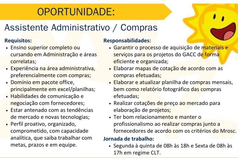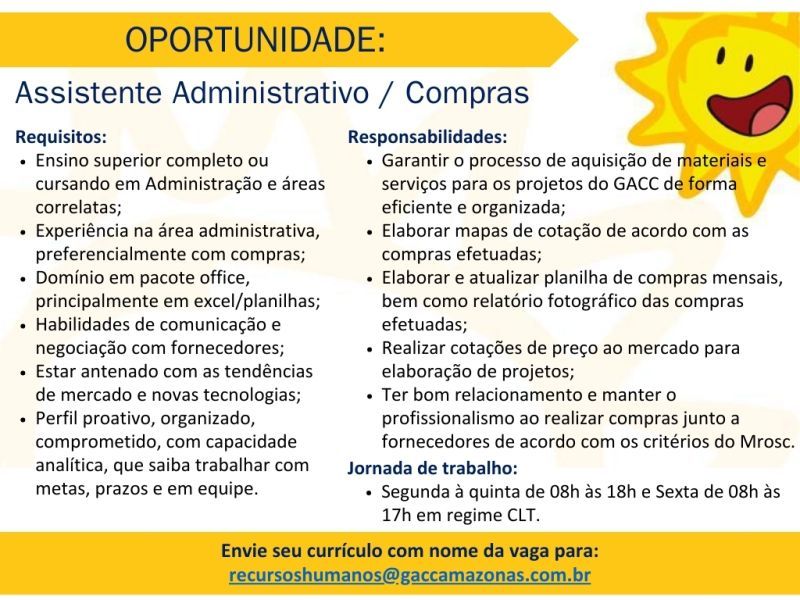 Empresa está selecionando Assistente administrativo compras; Envie seu currículo!