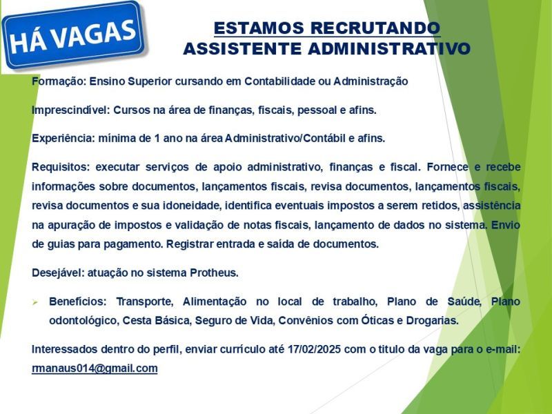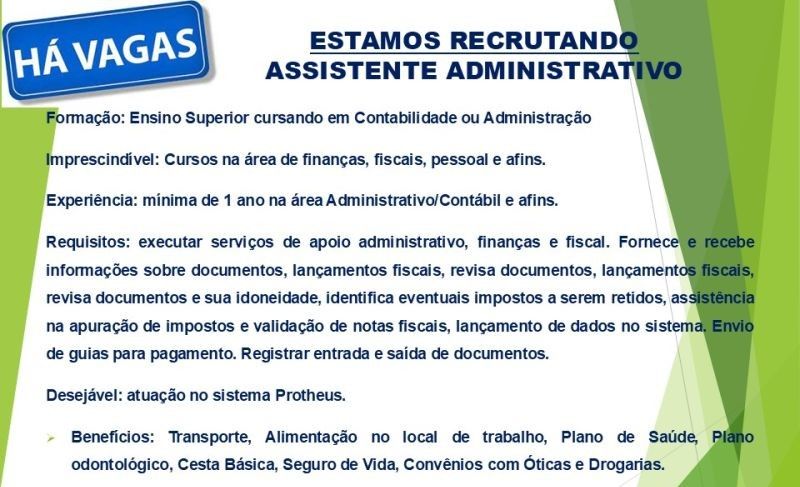 Empresa está selecionando Assistente administrativo; Envie seu currículo!