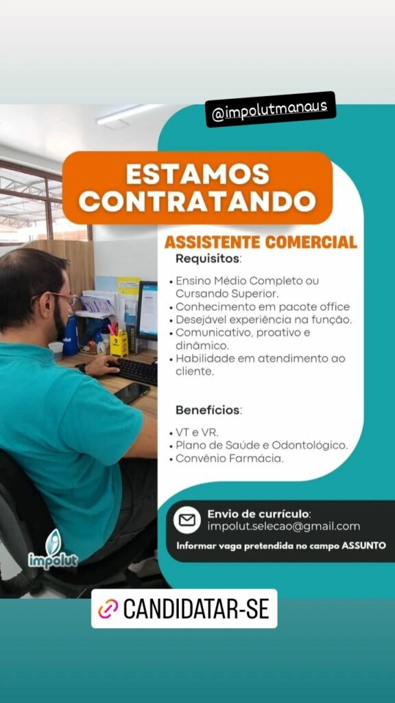 Empresa está selecionando Assistente comercial; Envie seu currículo!