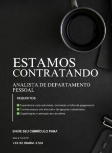 Empresa está selecionando Assistente de departamento pessoal, Analista de departamento pessoal; Envie seu currículo!