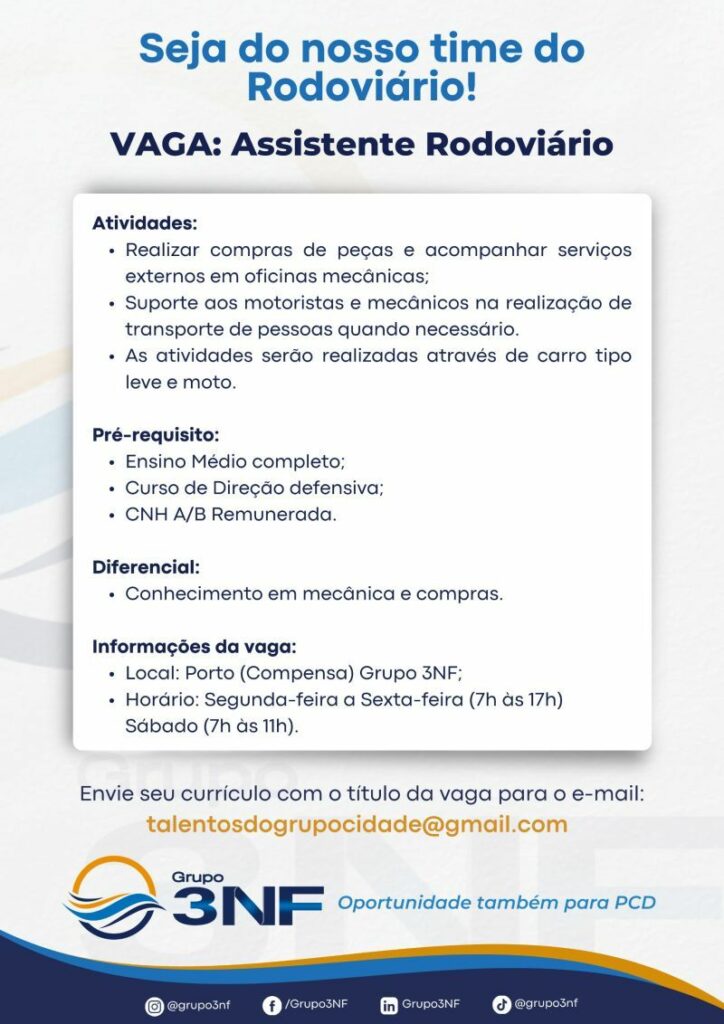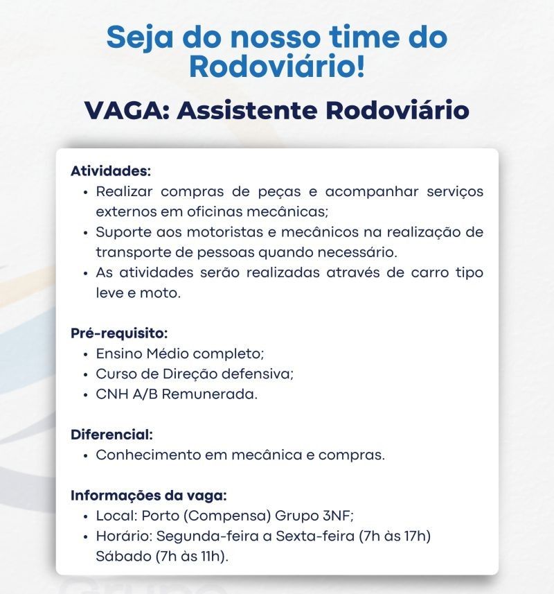 Empresa está selecionando Assistente rodoviário; Envie seu currículo!
