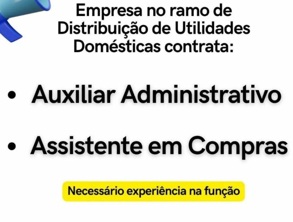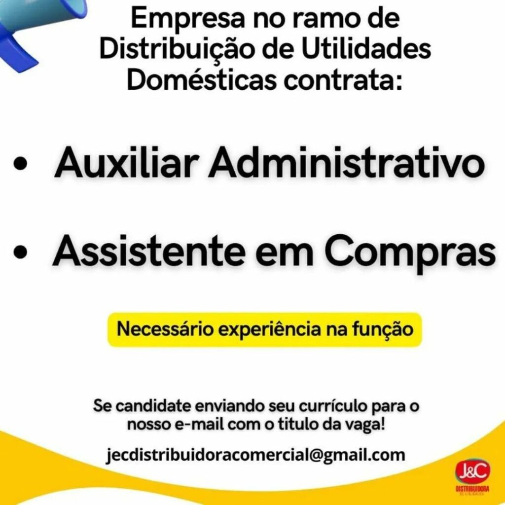 Empresa está selecionando Auxiliar administrativo, Assistente de compras; Envie seu currículo!