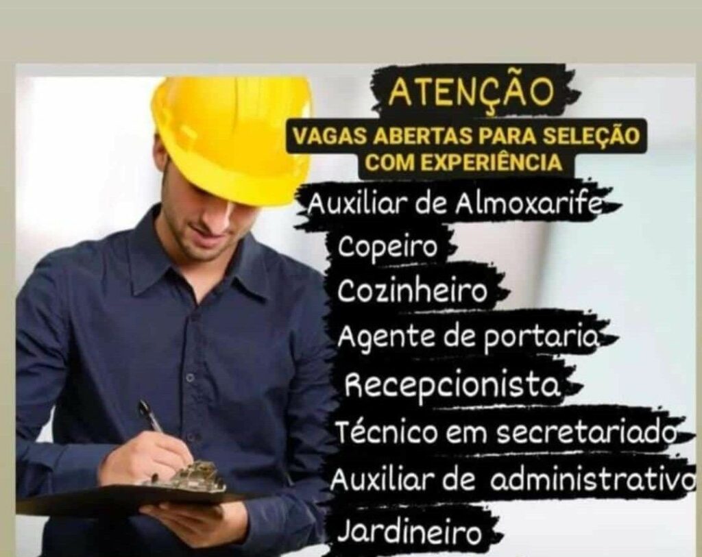 Empresa está selecionando Auxiliar de almoxarife, Copeiro, Cozinheiro, Agente de portaria, Recepcionista, Técnico em secretariado, Auxiliar administrativo, Jardineiro; Envie seu currículo!