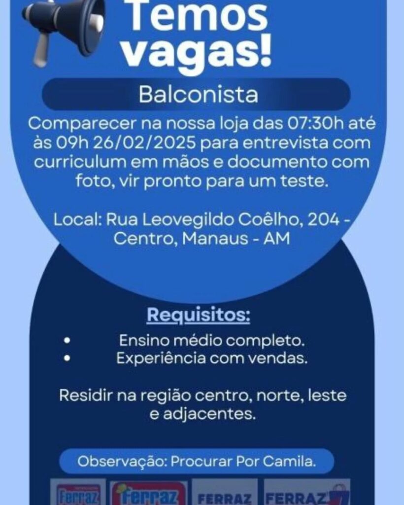 • Eletricista, Serralheiro e mais 110 vagas de emprego no Sine Amazonas