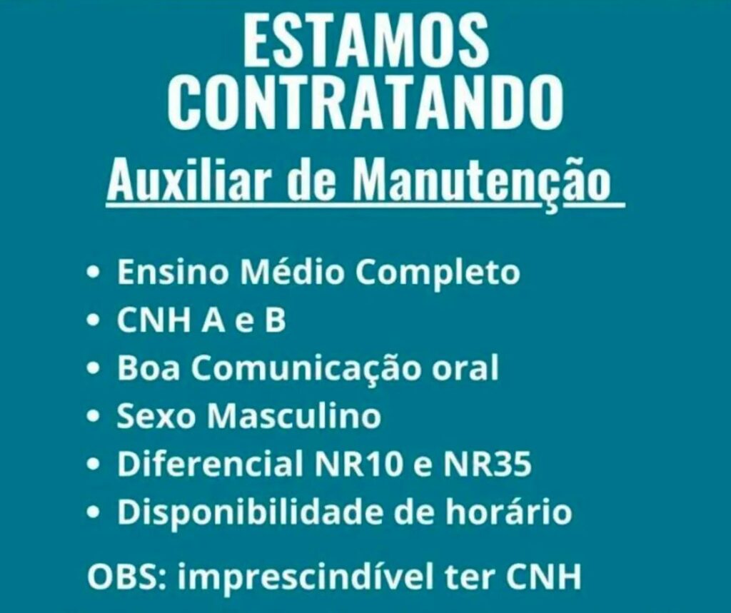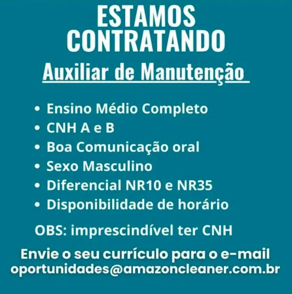 Empresa está selecionando Auxiliar de Manuntenção; Envie seu currículo!