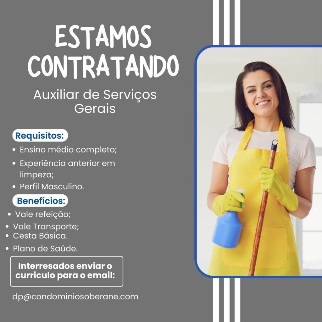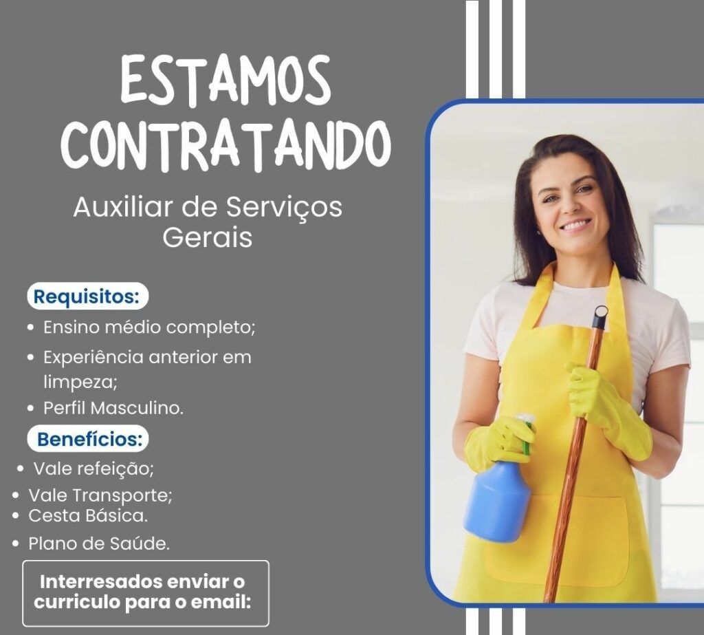 Empresa está selecionando Auxiliar de serviços gerais; Envie seu currículo!
