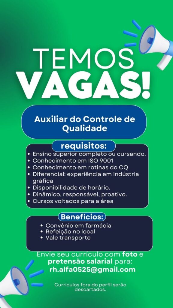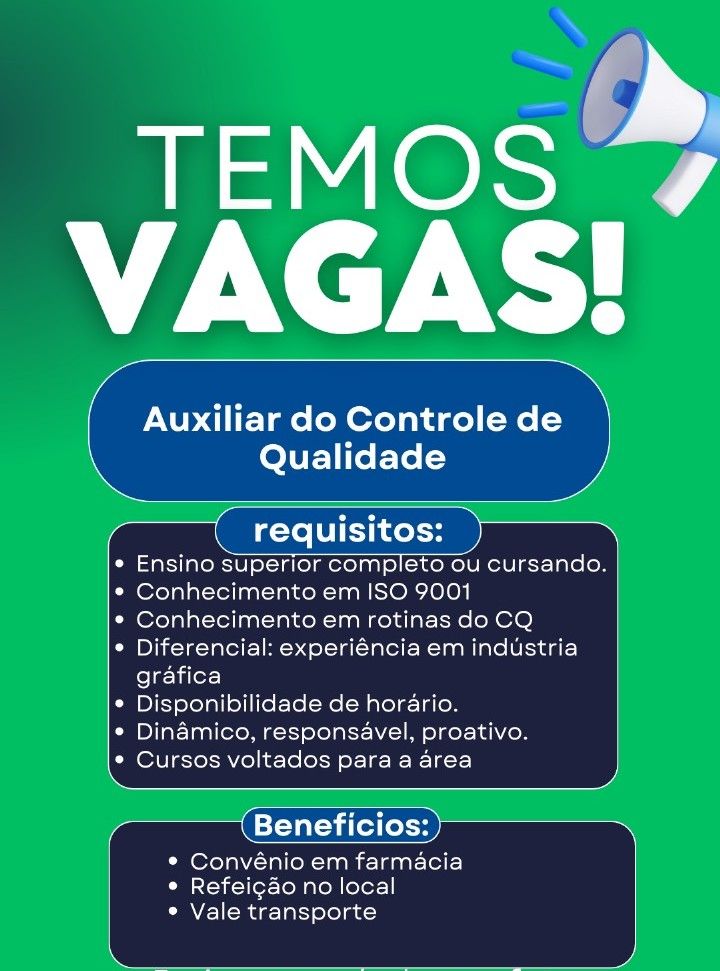 Empresa está selecionando Auxiliar do controle de qualidade; Envie seu currículo!
