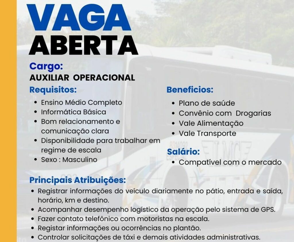 O processo seletivo para esta(s) vaga(s) não cobra absolutamente nada pela sua candidatura. Portanto, jamais aceite qualquer tipo de cobrança para cadastrar seu currículo.