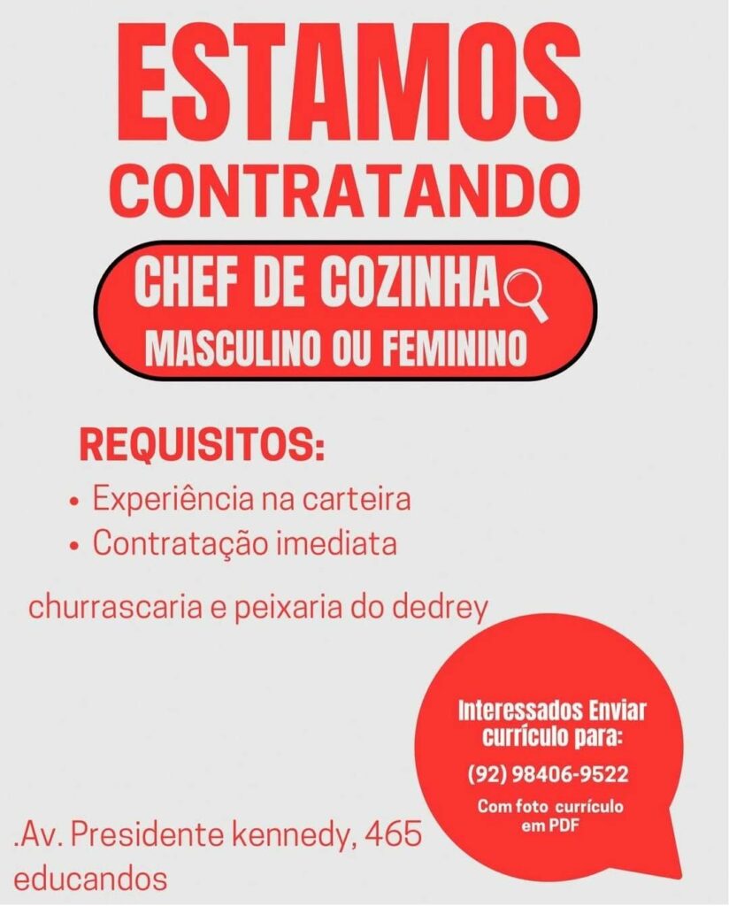 Empresa está selecionando Chefe de cozinha; Envie seu currículo!