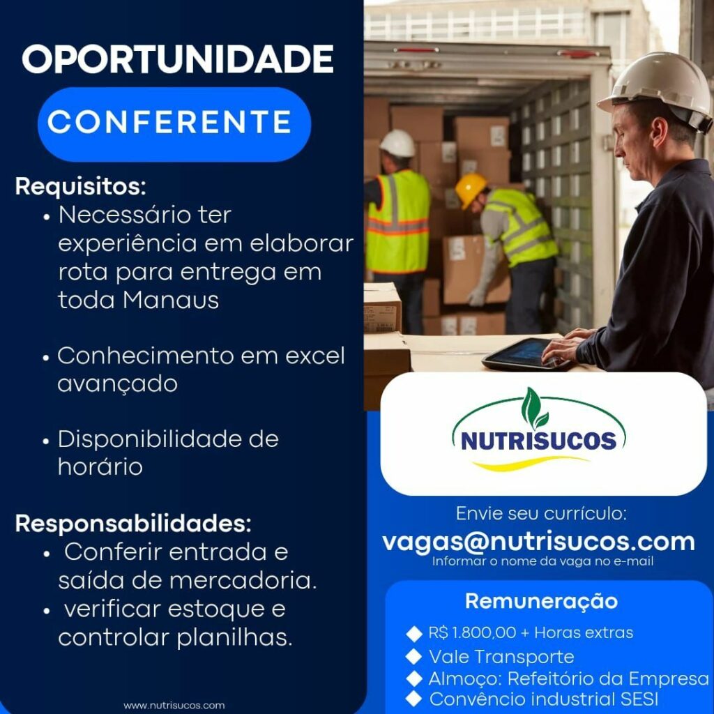 Empresa está selecionando Conferente; Envie seu currículo!