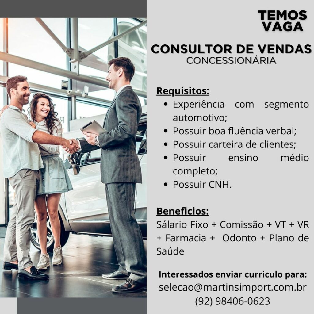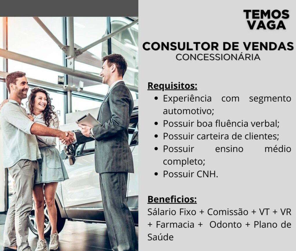 Empresa está selecionando Consultor de vendas; Envie seu currículo!