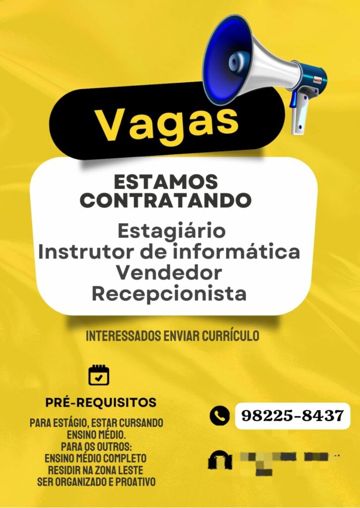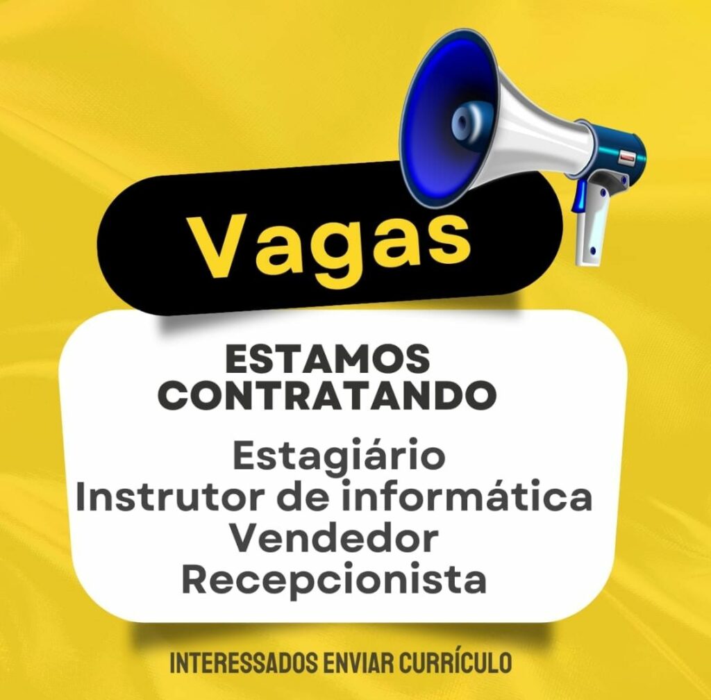Empresa está selecionando Estagiário, Instrutor de informática, Vendedor, Recepcionista; Envie seu currículo!