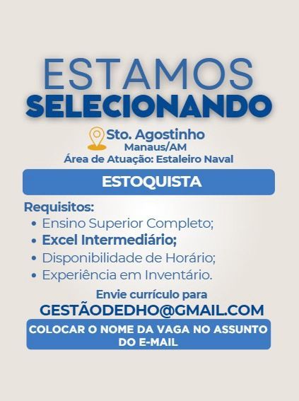 Empresa está selecionando Estoquista; Envie seu currículo!