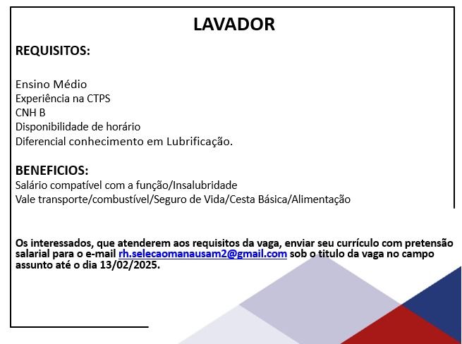 Empresa está selecionando Lavador; Envie seu currículo!