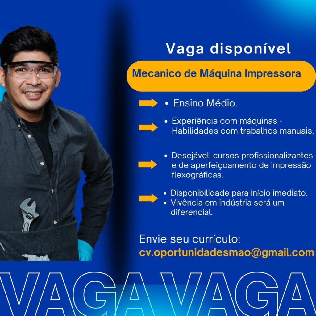 Empresa está selecionando Mecânico de máquina impressora; Envie seu currículo!