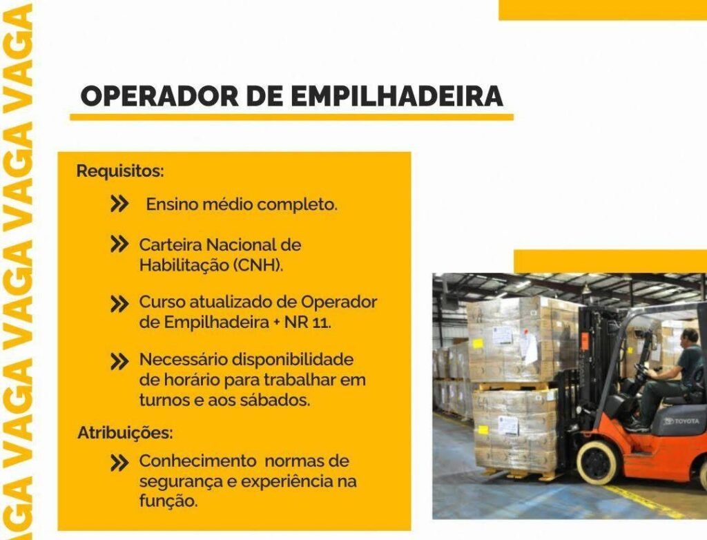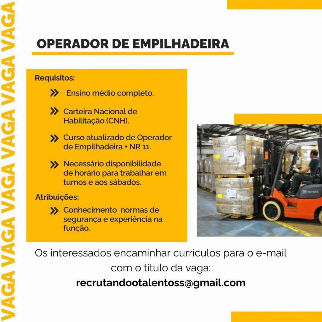 Empresa está selecionando Operador de empilhadeira; Envie seu currículo!