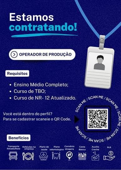 Empresa está selecionando Operador de produção; Envie seu currículo!
