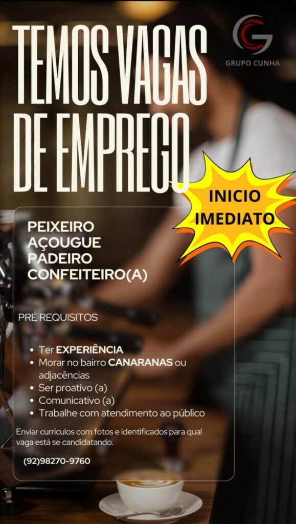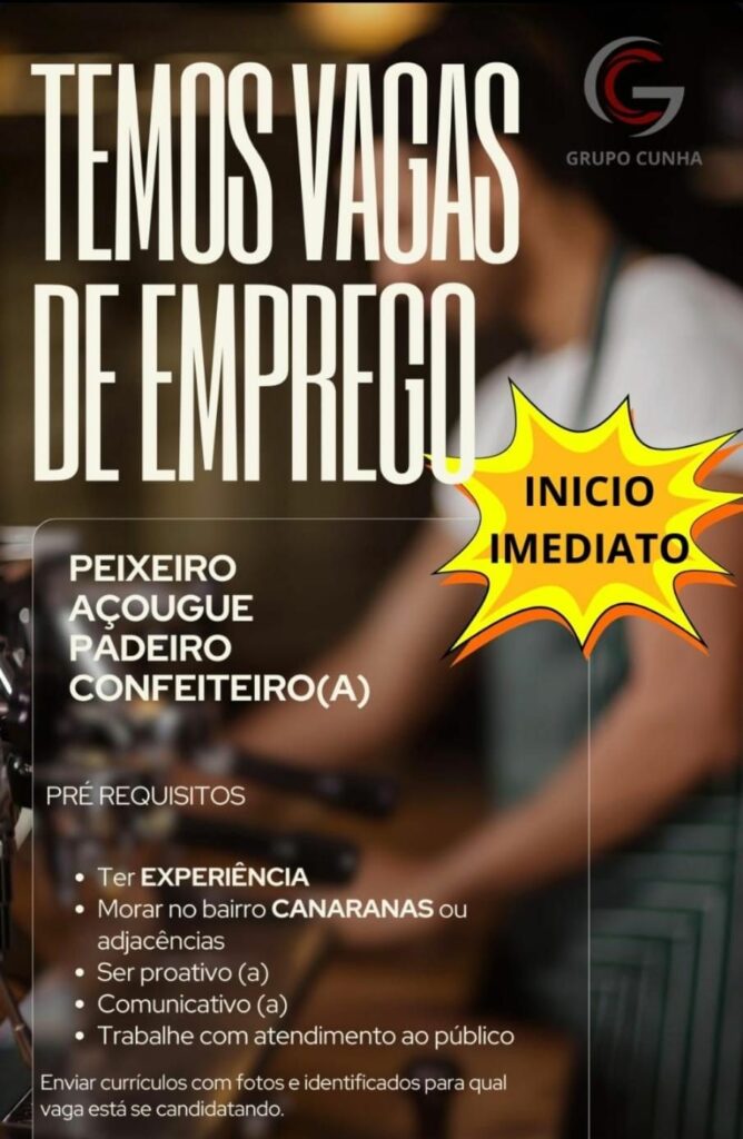 Empresa está selecionando Peixeiro, Açougue, Padeiro, Confeiteiro (a); Envie seu currículo!