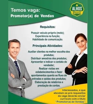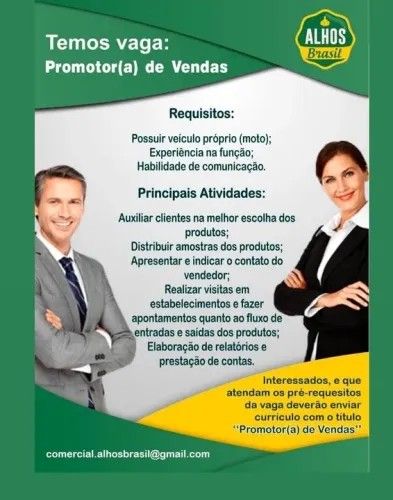 Empresa está selecionando Promotor (a) de vendas; Envie seu currículo!