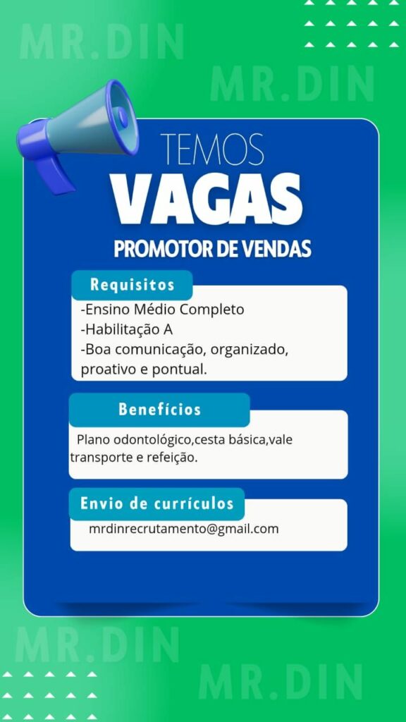 Empresa está selecionando Promotor de vendas; Envie seu currículo!