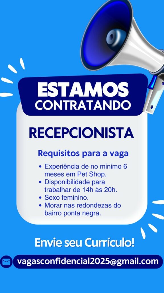 Empresa está selecionando Recepcionista; Envie seu currículo!