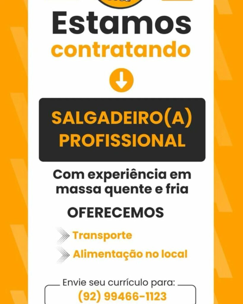 Empresa está selecionando Salgadeiro (a) profissional; Envie seu currículo!