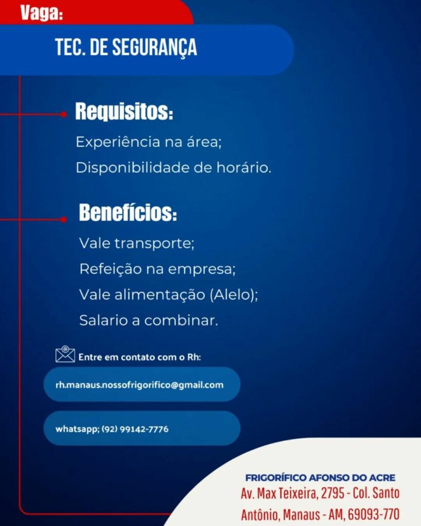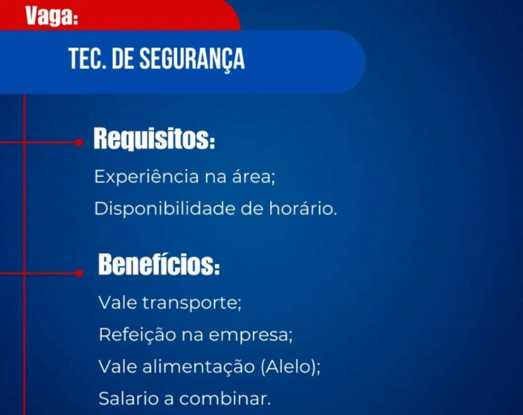 Empresa está selecionando Téc de segurança; Envie seu currículo!