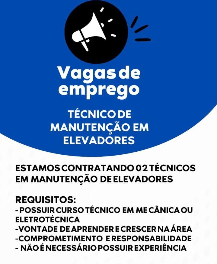 Empresa está selecionando Técnico de Manuntenção em elevadores; Envie seu currículo!