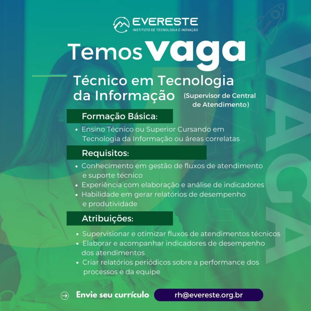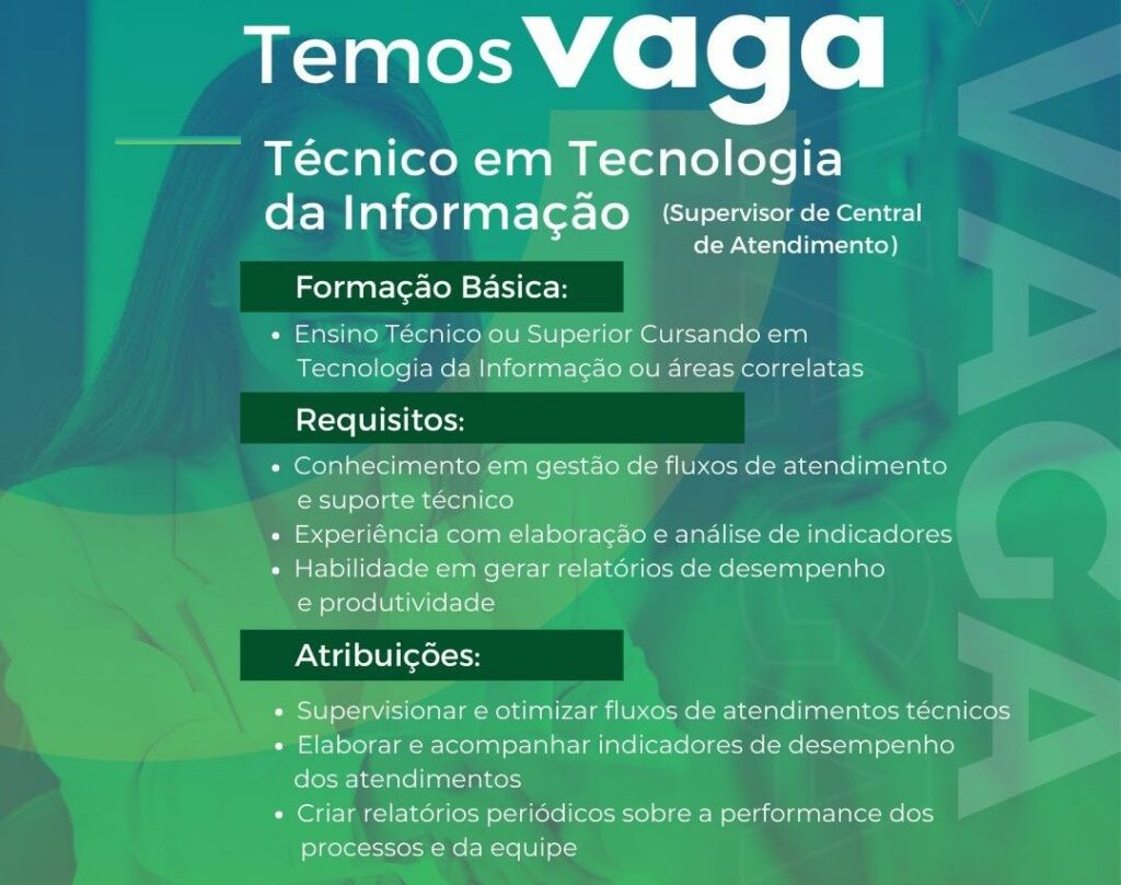 Empresa está selecionando Técnico de tecnologia da informação; Envie seu currículo!