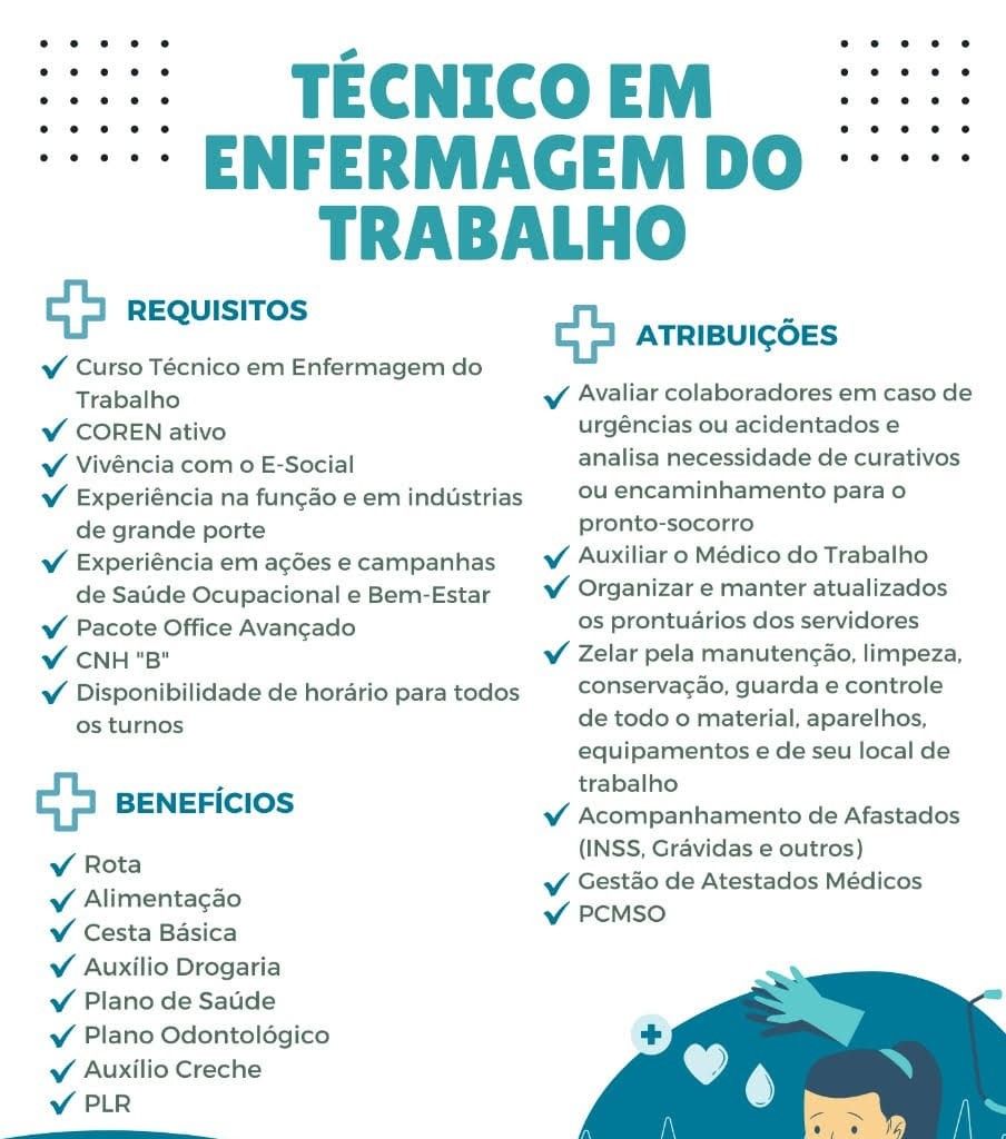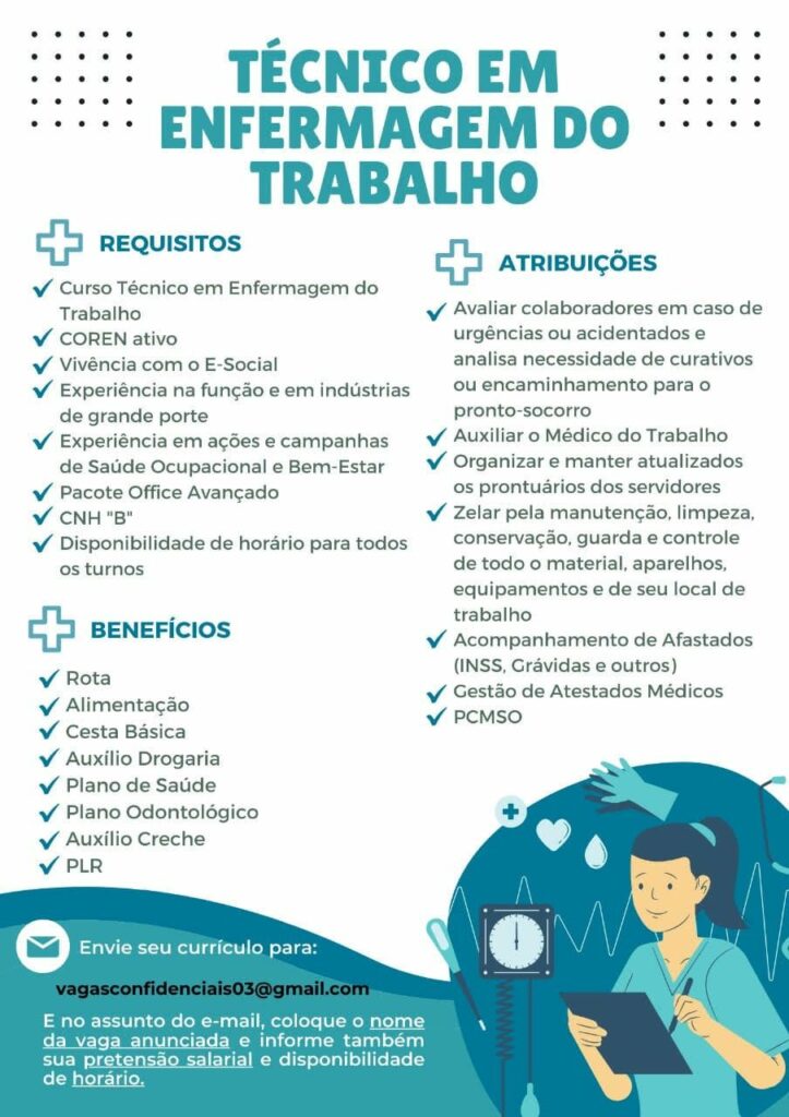 Empresa está selecionando Técnico em enfermagem do trabalho; Envie seu currículo!