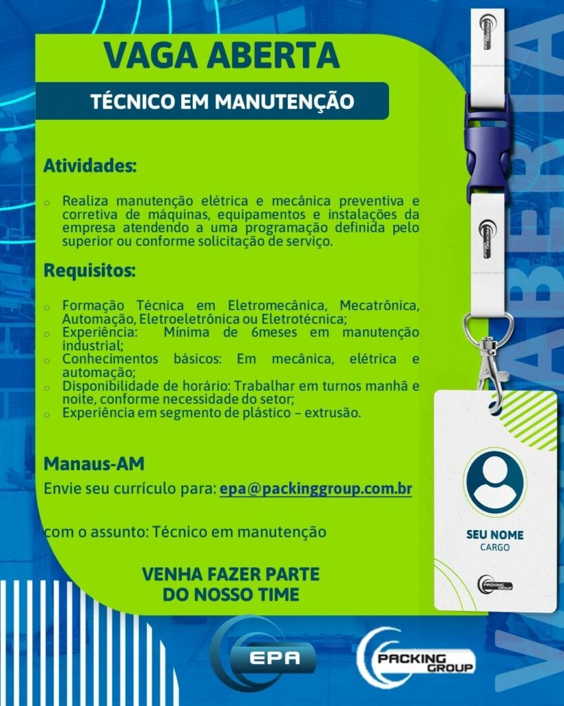 Empresa está selecionando Técnico em manutenção; Envie seu currículo!