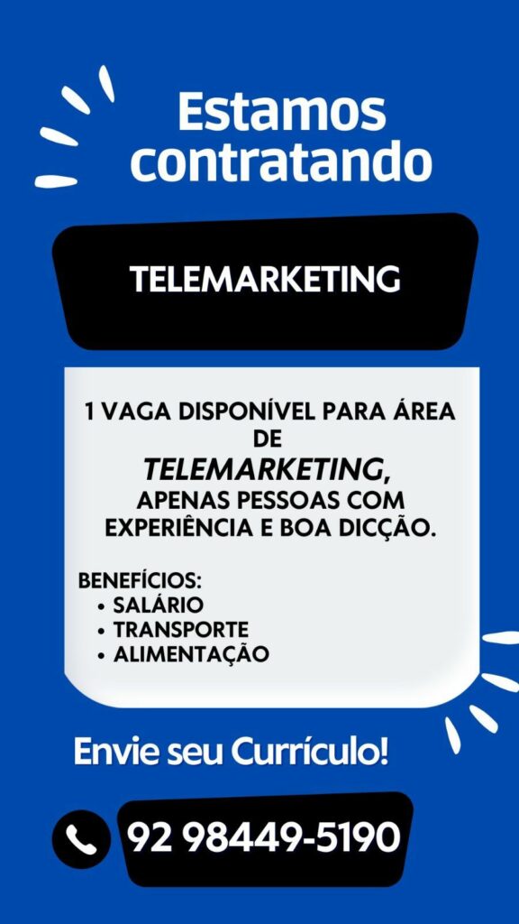 Empresa está selecionando Telemarketing; Envie seu currículo!