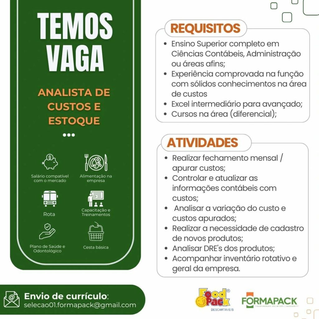O processo seletivo para esta(s) vaga(s) não cobra absolutamente nada pela sua candidatura. Portanto, jamais aceite qualquer tipo de cobrança para cadastrar seu currículo.