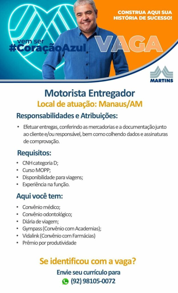 Empresa Martins seleciona Motorista entregador; Envie seu currículo!