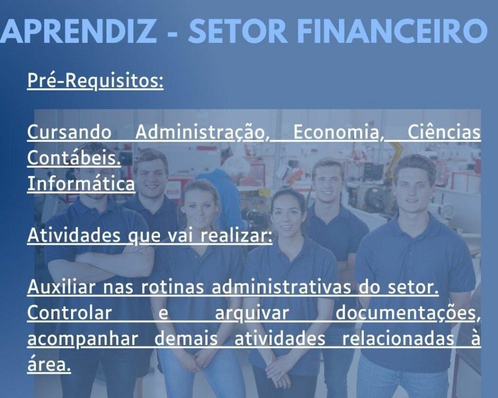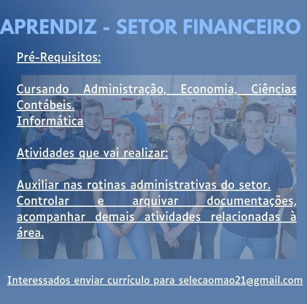 Empresa seleciona Aprendiz setor financeiro; Envie seu currículo!