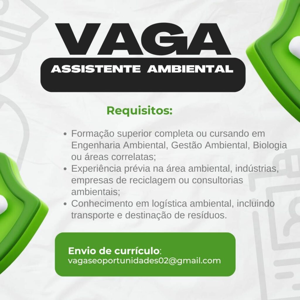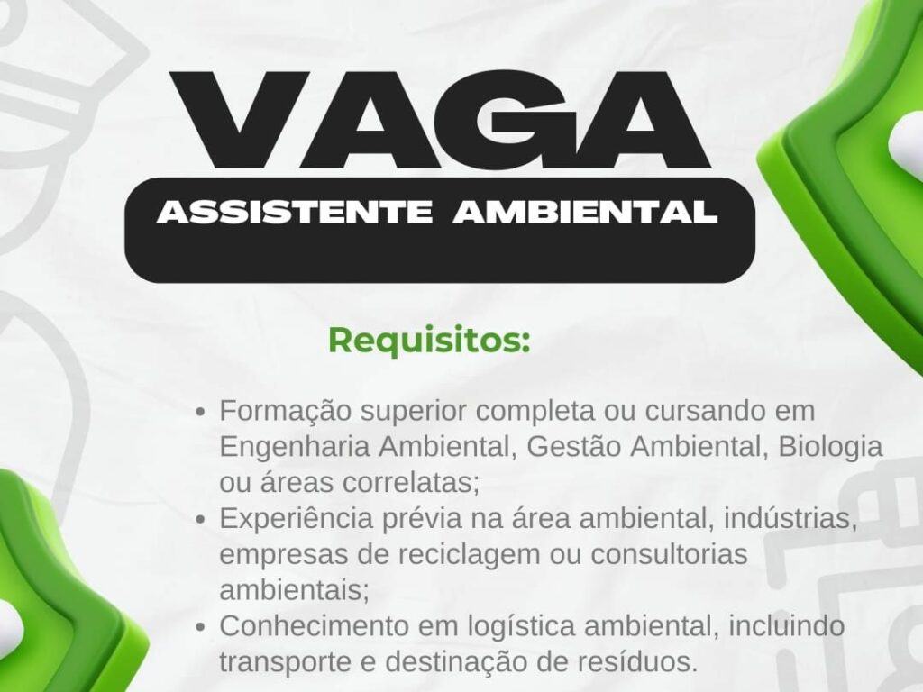 Empresa seleciona Assistente ambiental; Envie seu currículo!