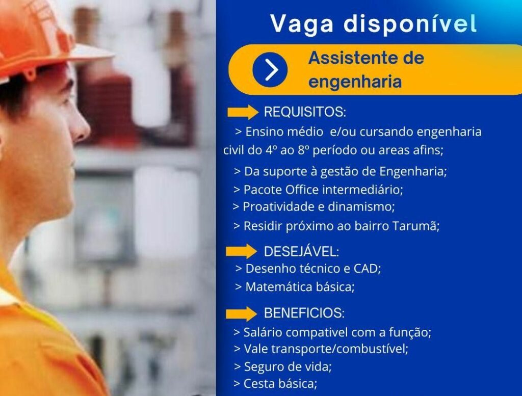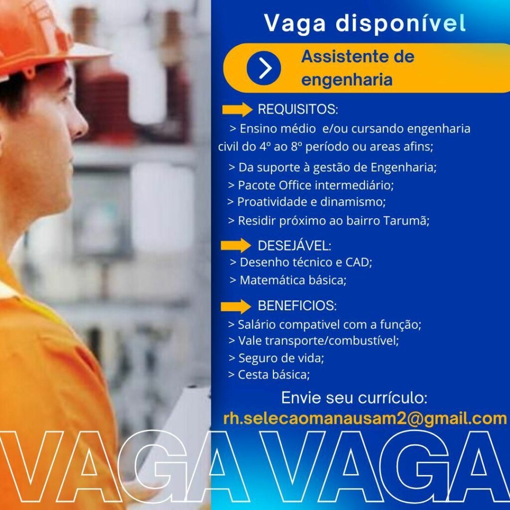 Empresa seleciona Assistente de engenharia; Envie seu currículo!