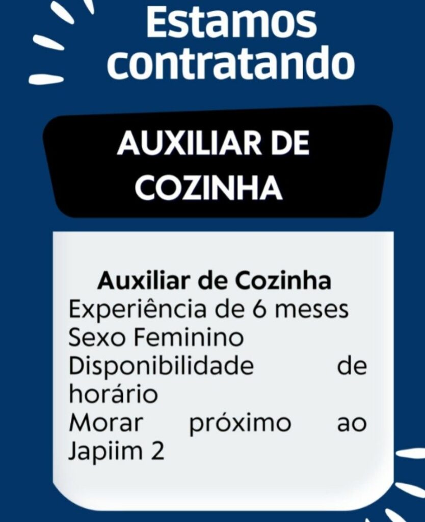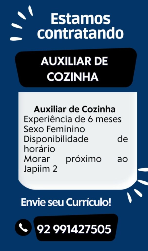 Empresa seleciona Auxiliar de cozinha; Envie seu currículo!