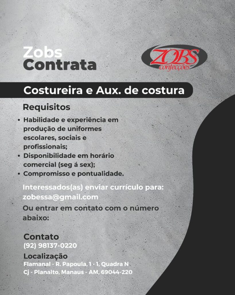 Empresa seleciona Costureira, Auxiliar de costura; Envie seu currículo!