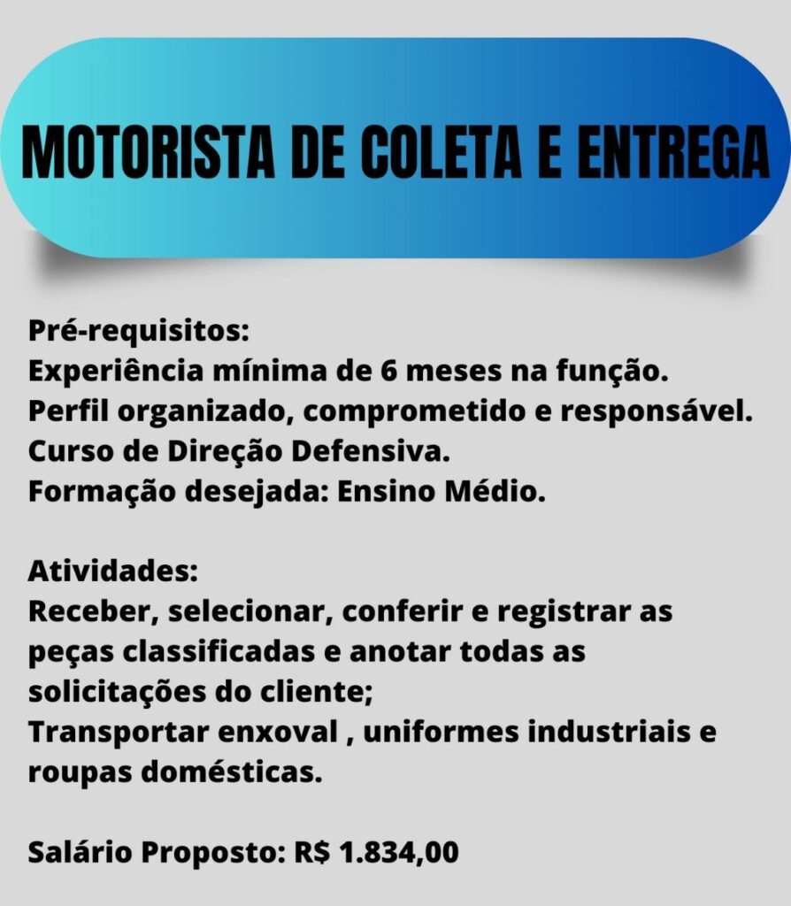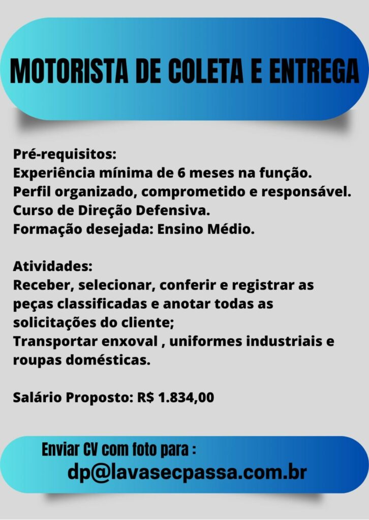 Empresa seleciona Motorista de coleta e entrega; Envie seu currículo!