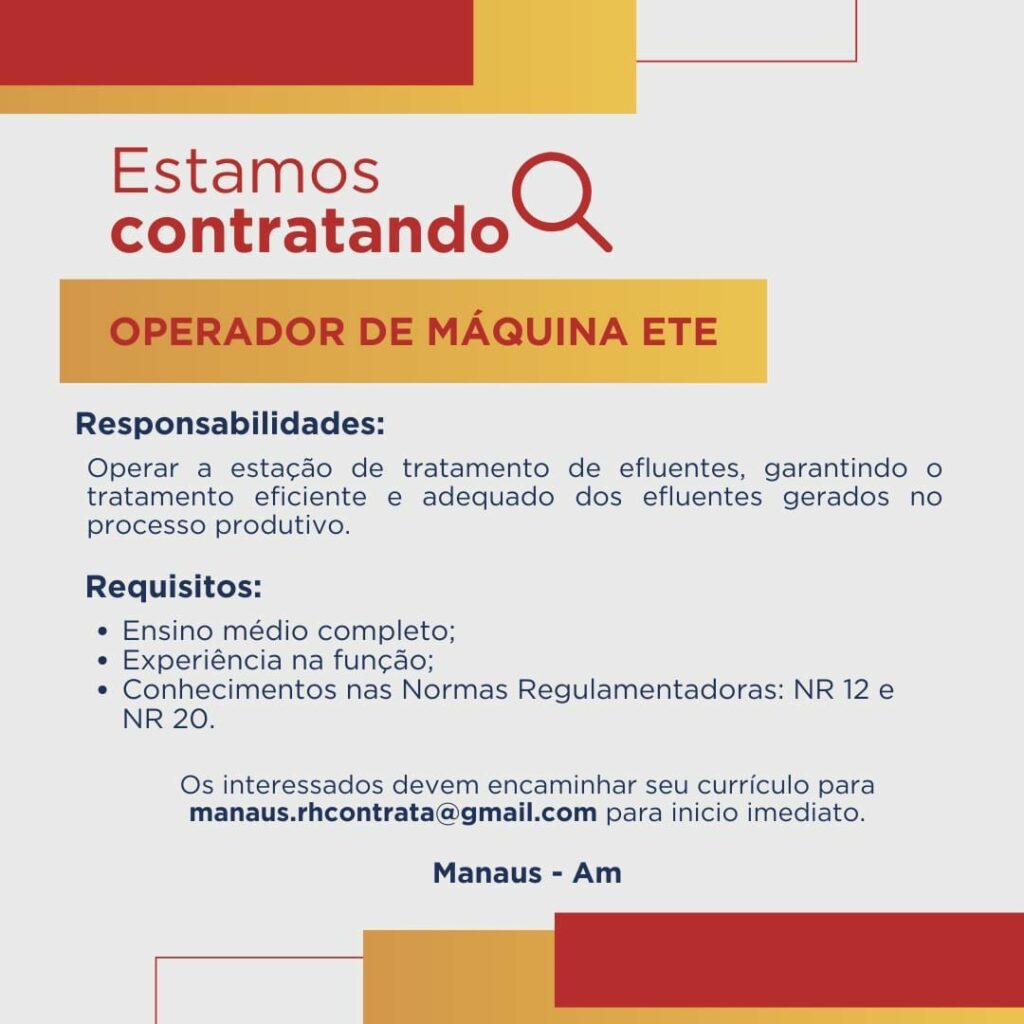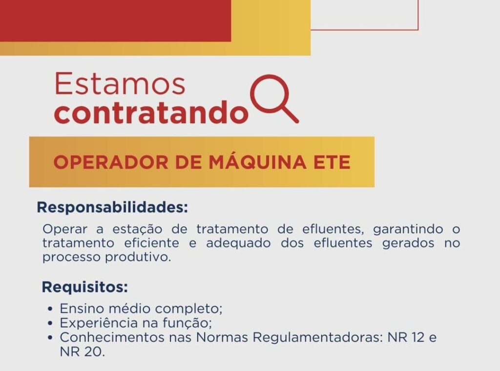Empresa seleciona Operador de máquina ete; Envie seu currículo!