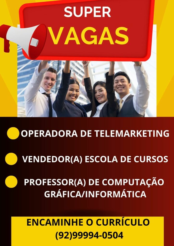 Empresa seleciona Operadora de telemarkenting, Vendedor (a) escola de cursos, Professor (a) de computação gráfica informática; Envie seu currículo!