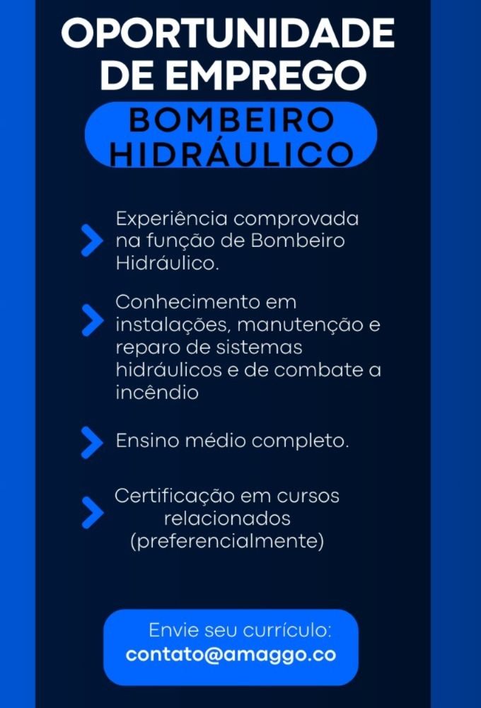 Empresa seleciona para vaga de Bombeiro hidráulico; Envie seu currículo!