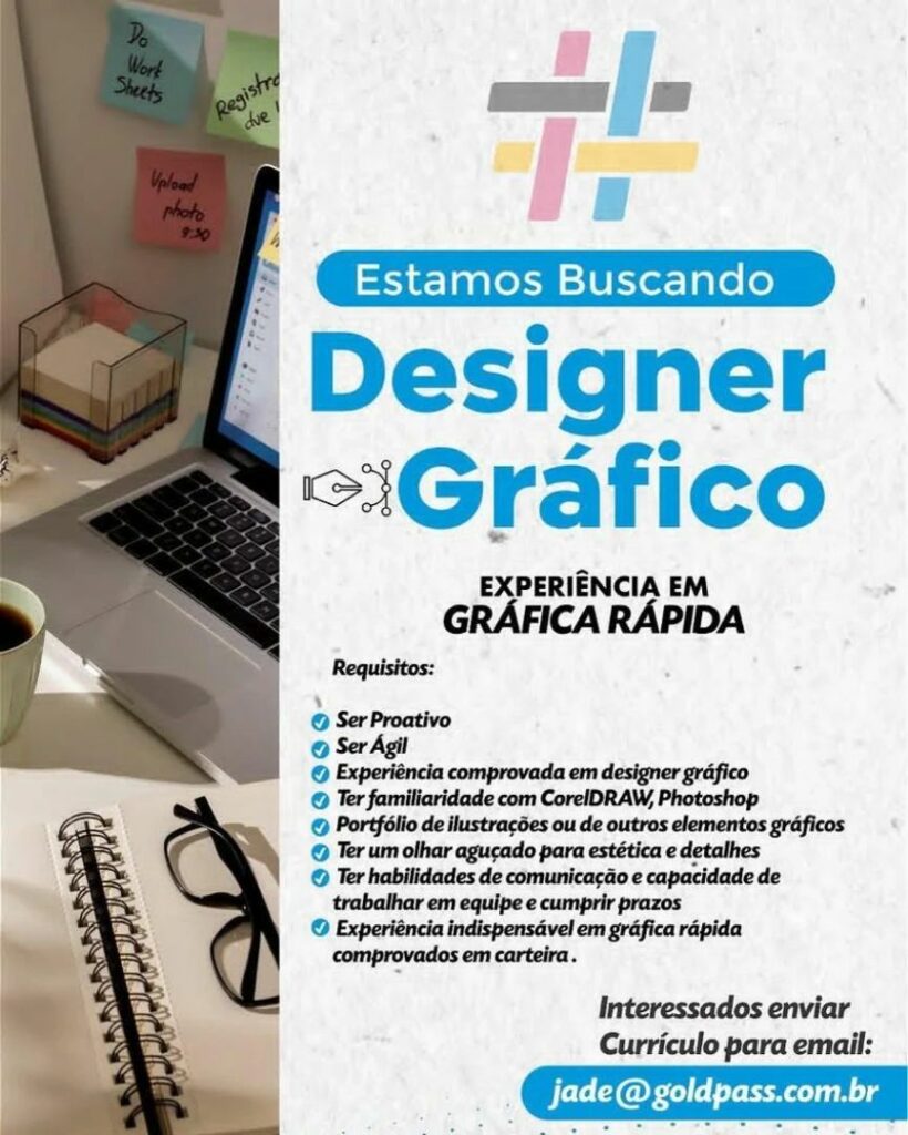 Empresa seleciona para vaga de Designer gráfico; Envie seu currículo!