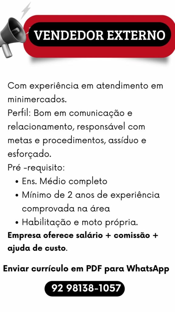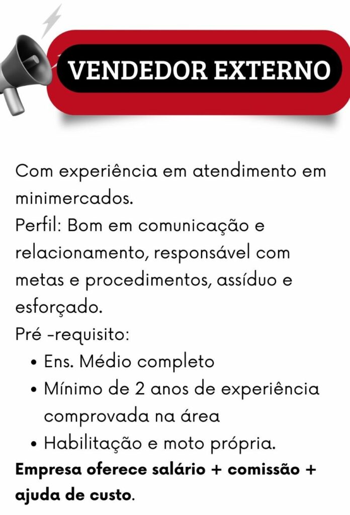 Empresa seleciona Vendedor externo; Envie seu currículo!