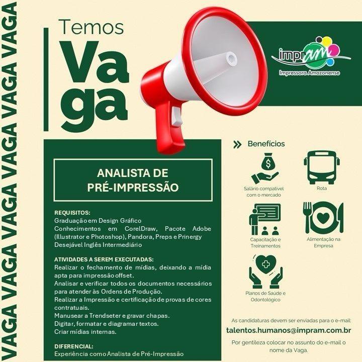 Nunca pague qualquer quantia para participar de um processo para que seja selecionado. Não compre nenhum curso, apostilas ou serviços que prometem participação na seleção ou contratação de uma vaga. E nunca insira dados bancários, cartões ou envie documentos por e-mail ou através de sites que não reconhecem. Não nos responsabilizamos por nenhum tipo de pagamento efetuado.