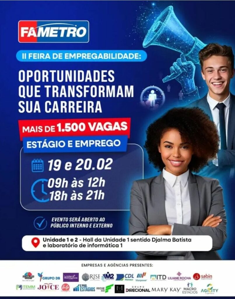 Nos dias 19 e 20 de fevereiro, a FAMETRO promoverá a II Feira de Empregabilidade, um evento que promete transformar a vida profissional dos participantes, oferecendo mais de 1.500 vagas entre estágios e empregos.
