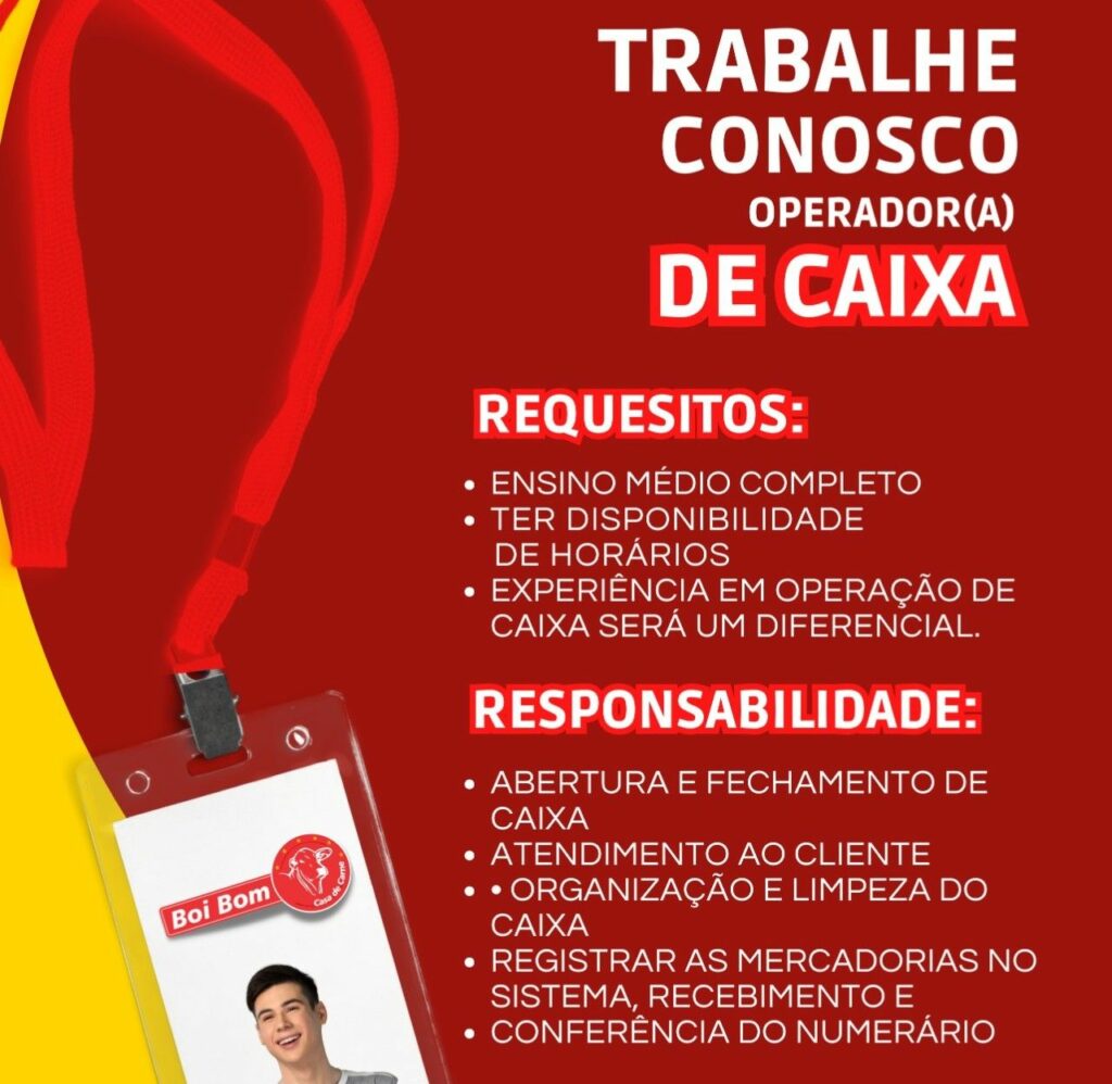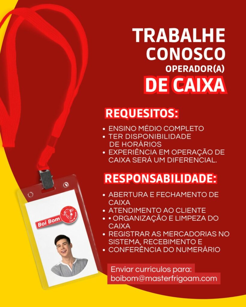 Frigorífico está selecionando Operador (a) de caixa; Envie seu currículo!