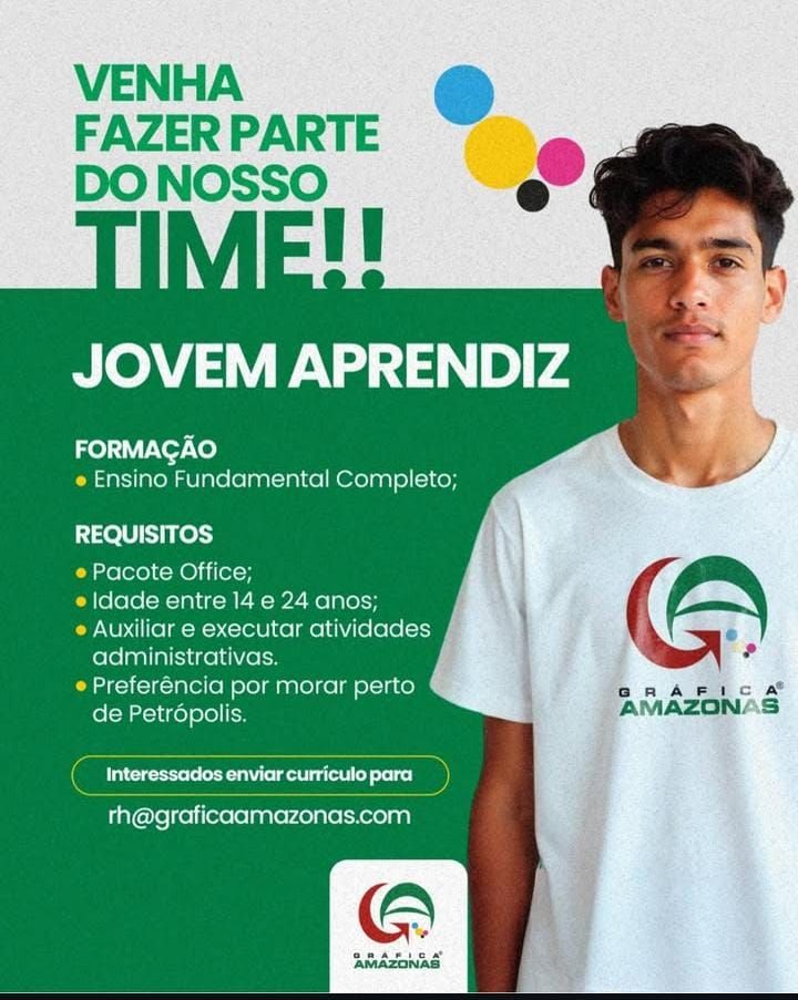 Gráfica está selecionando Jovem Aprendiz; Envie seu currículo!