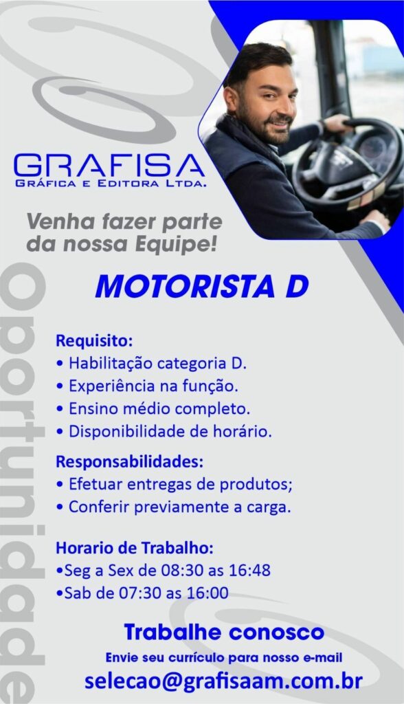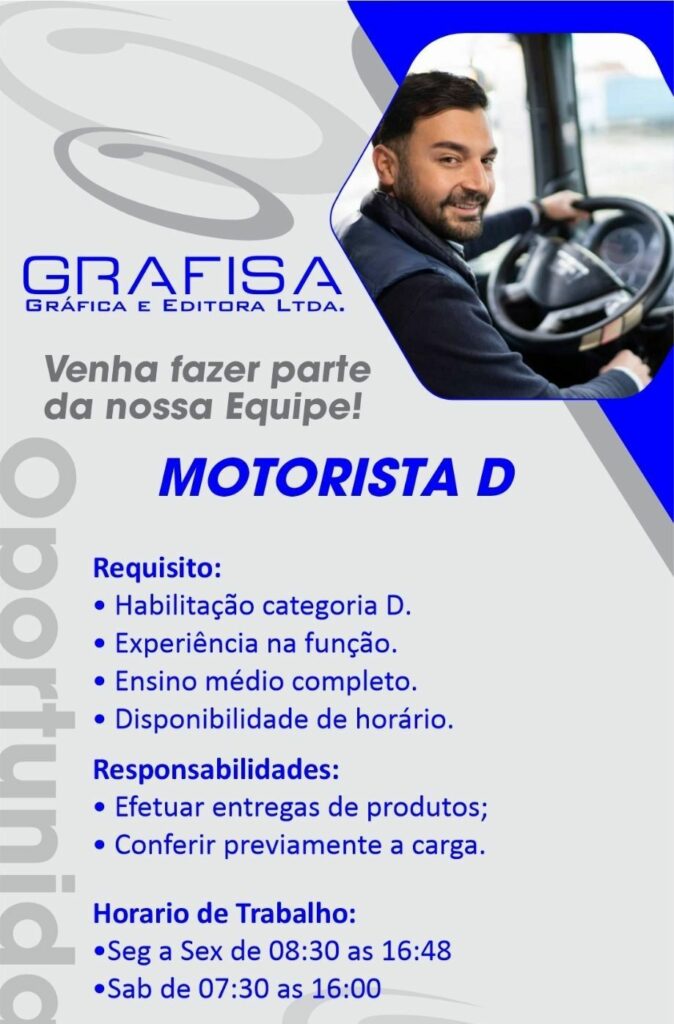 Grafisa seleciona Motorista; Envie seu currículo!